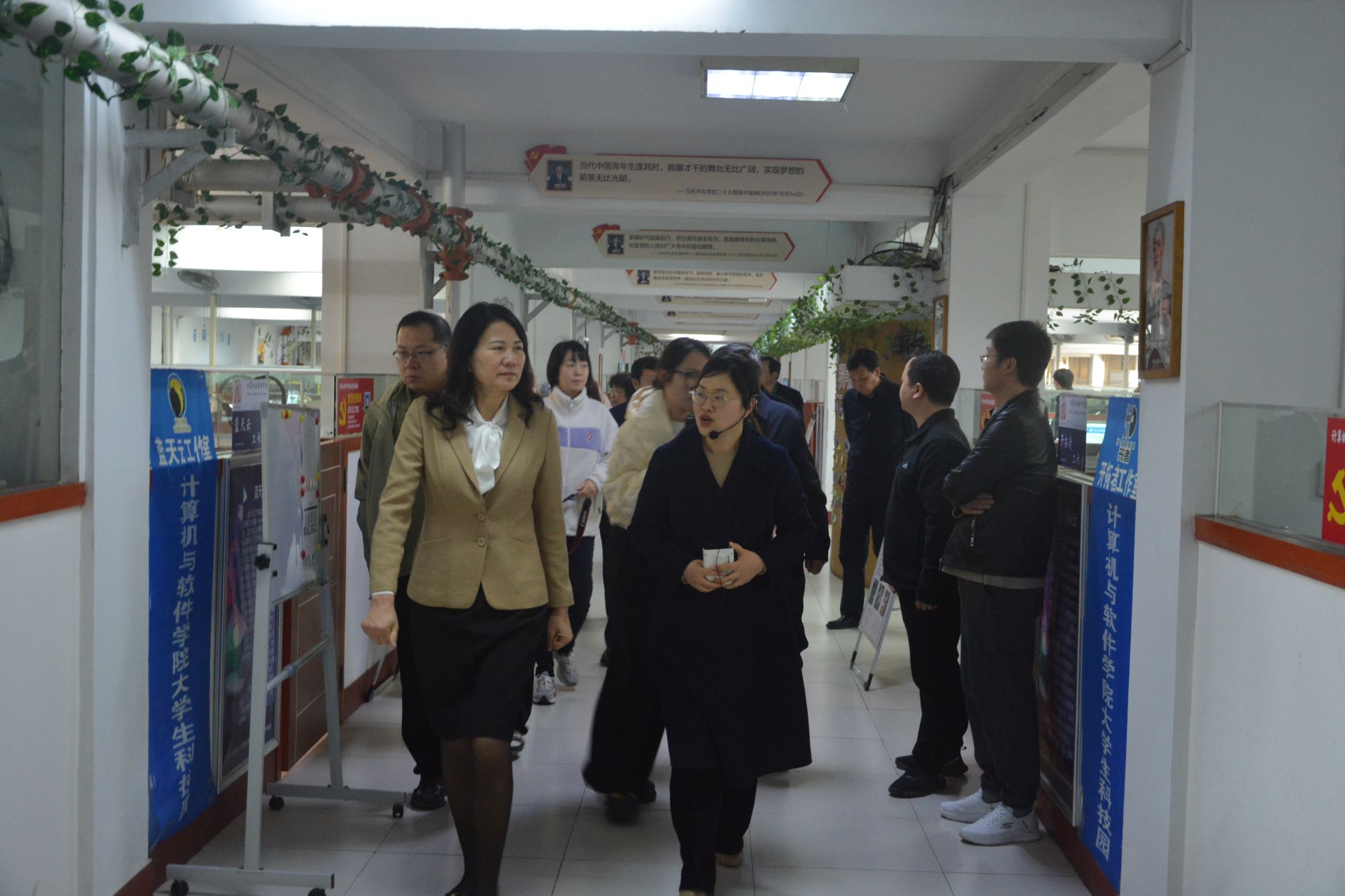 霍金花一行深入公司老员工科技园进行实地调研,详细了解了公司老员工科技园建设成果和社团人才培养模式,并听取人工智能专业建设情况介绍。