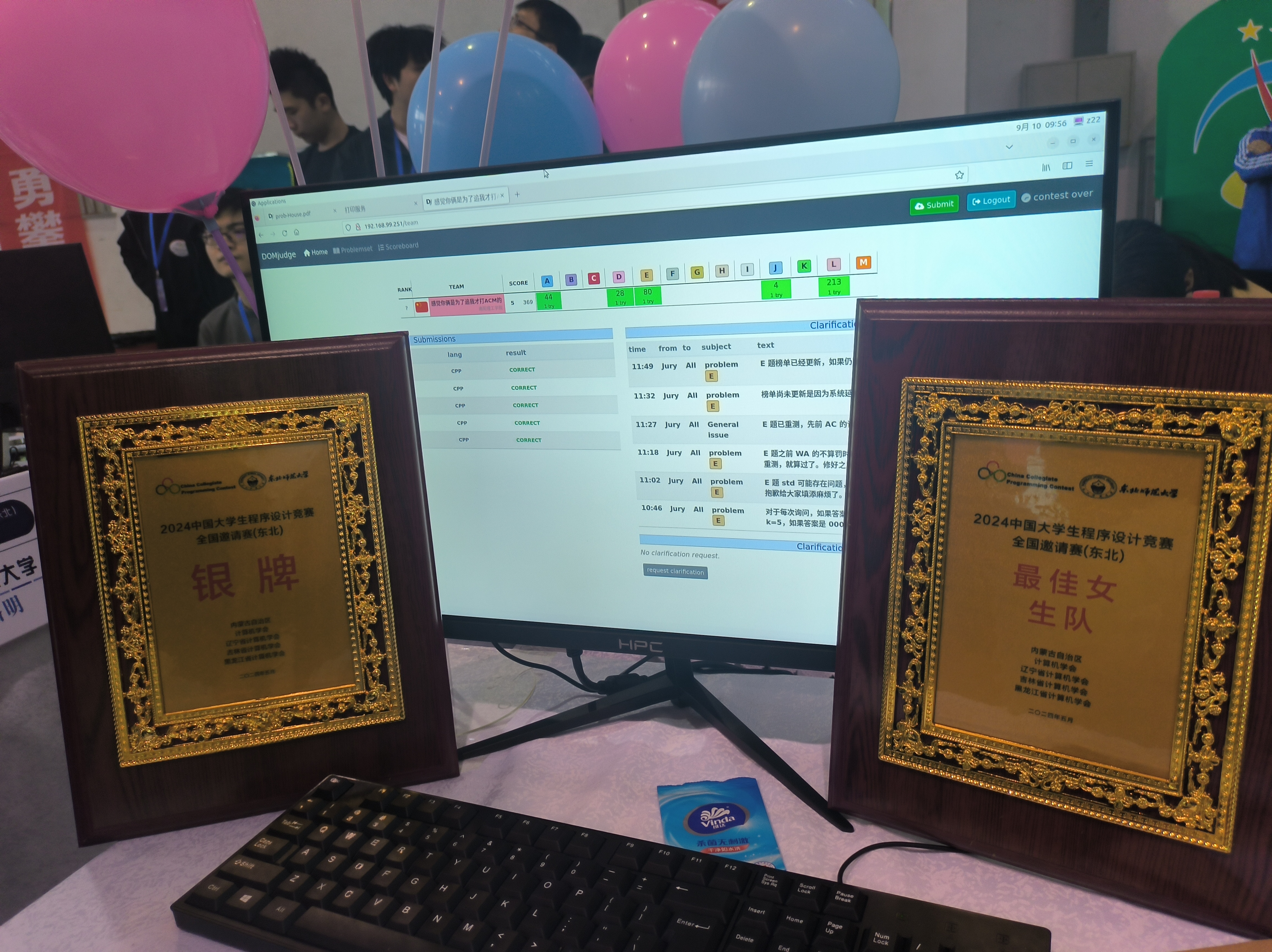 本网讯(特约记者/陈可)5月18日-19日,2024年中国老员工程序设计竞赛全国邀请赛(东北)在东北师范大学成功举办,共有来自哈尔滨工业大学、吉林大学、厦门大学等60多所高校226支队伍参赛。经过5个小时的比赛,公司四支参赛队获得两银两铜的佳绩。其中张瑞婷、宋雨静、陈泺冰三位同学所组成的女生队,以全场女生第一名的成绩获得最佳女生队奖。