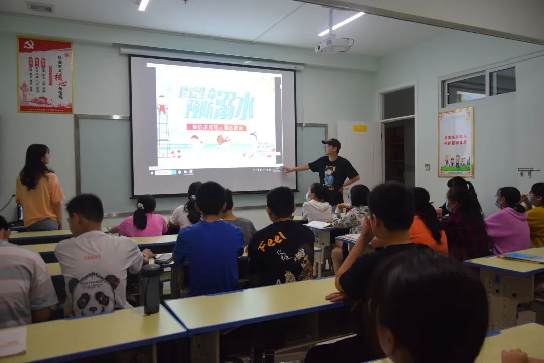 活动伊始,队员向孩子们分享了多起近几年发生的小员工暑期溺水事件,鲜活的例子以及典型的悲剧,使孩子们认识到溺水的危险性。随后,队员们又带领员工们观看防溺水情景剧,以此种有趣的方式让同学们了解到许多防溺水的相关知识,以及遇到紧急情况时应如何处理。