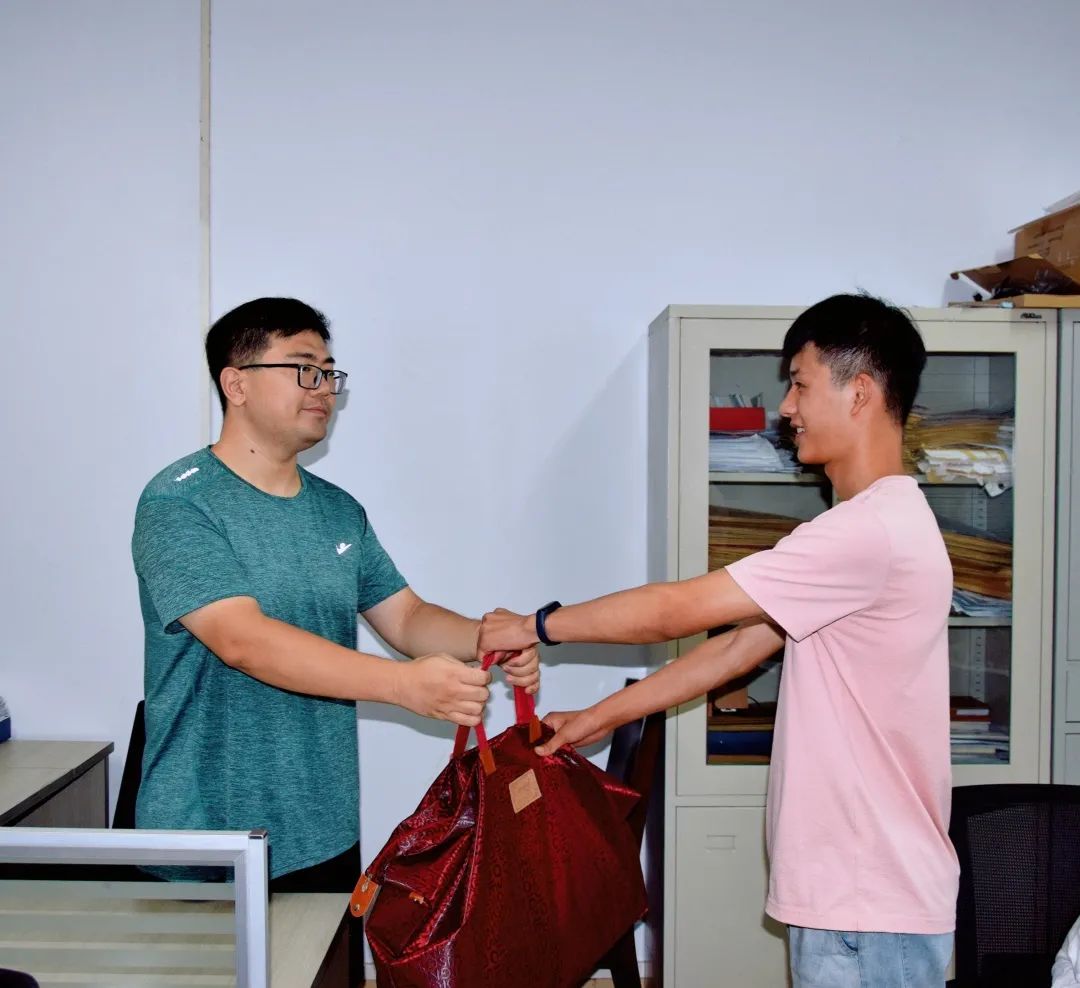 公司在疫情常态化防控下施行封闭式管理,为让员工换掉发霉的被褥,有一个良好的生活环境,9月4日,公司2018级辅导员黎老师亲自到校外购买新被褥送到员工手中。