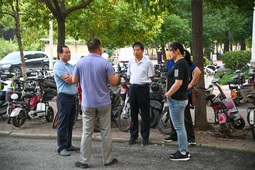 开学第一天,为让员工顺利适应错峰上下课,公司老师在系楼前值班,确保上课有序进行。