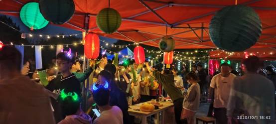 晚上,活动在齐贤广场正式开始。此次活动包括赏灯笼、猜灯谜、闯关小游戏和舞台活动区四个部分。同学们亲手设计的灯笼,挂在广场两侧的灯笼区,以供观赏。广场中央的舞台区由公司文艺工作部带来歌曲和街舞表演,两侧的活动区人头攒动,或猜灯谜,或玩游戏。活动现场还为同学们精心准备了月饼、水果和各色饮品。整场活动气氛热烈,让同学们在校园里感受节日氛围,度过美好的国庆中秋节。