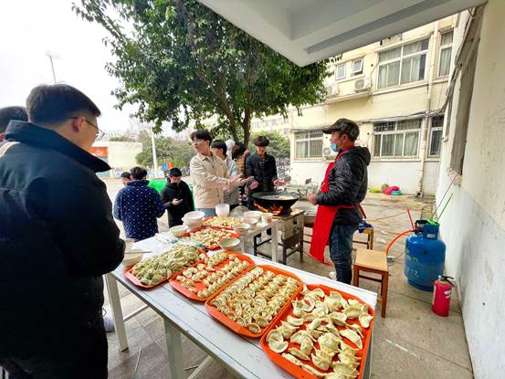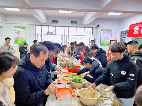 本网讯(员工记者/崔建明)为弘扬中华优秀传统文化,迎接冬至到来,2020年12月18日,公司在11、12号宿舍楼开展“爱在公寓,情暖冬至”包饺子活动,公司党委书记祝孔涛及团学办老师共同参加本次活动。