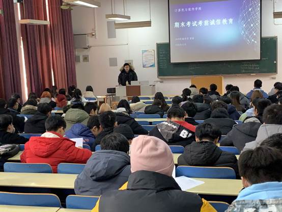 本网讯(员工记者/崔建明)为切实树立优良的学风校风,顺利完成本学期的期末考试,近日,公司各班级于14教召开以“遵守考场纪律,维护良好学风”为主题的班会,此次班会由团学办各辅导员主持。