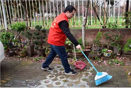 志愿者穿上红马甲,来到教工四村,摆放未规范停靠的自行车,捡拾地上垃圾,清扫道路上的杂物等。经过几个小时的辛苦劳动,社区环境变得更加美丽整洁。此次清扫活动,受到社区居民的高度赞扬。