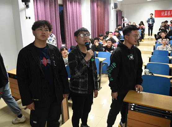 本次知识竞赛涉及知识、娱乐、竞赛等多方面,生动有趣,极大地调动了同学们的积极性。比赛中,观众们不时地爆发出热烈的掌声。前两轮激烈的角逐过后,来到了观众趣味性答题环节,现场同学积极参与,紧张的氛围变得轻松有趣。紧接着到了决赛阶段——个人抢答环节,各位选手精神高度集中,答题逐渐进入白热化,选手们积极抢答,观众们热烈响应。精彩的比拼之后,数据库一班付路佳、移动一班盖凌宵、数据库二班张琪三人晋级最终决赛。在主持人介绍完决赛的答题机制后,场上氛围变得格外的紧张。一声开始,三人积极抢答,你追我赶。紧张而刺激的时刻终于到了,移动一班盖凌宵赢得了本次比赛的冠军,比赛在热烈的掌声中圆满结束。