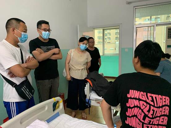 在病房,申书记与员工进行了交流,仔细询问了病情及治疗情况,了解到员工家在鹤壁,因为暴雨阻断交通,家长无法前来,申书记叮嘱员工一定要安心治疗,早日康复,有困难及时联系辅导员老师,并嘱咐其辅导员持续关注该生并对其进行帮助。