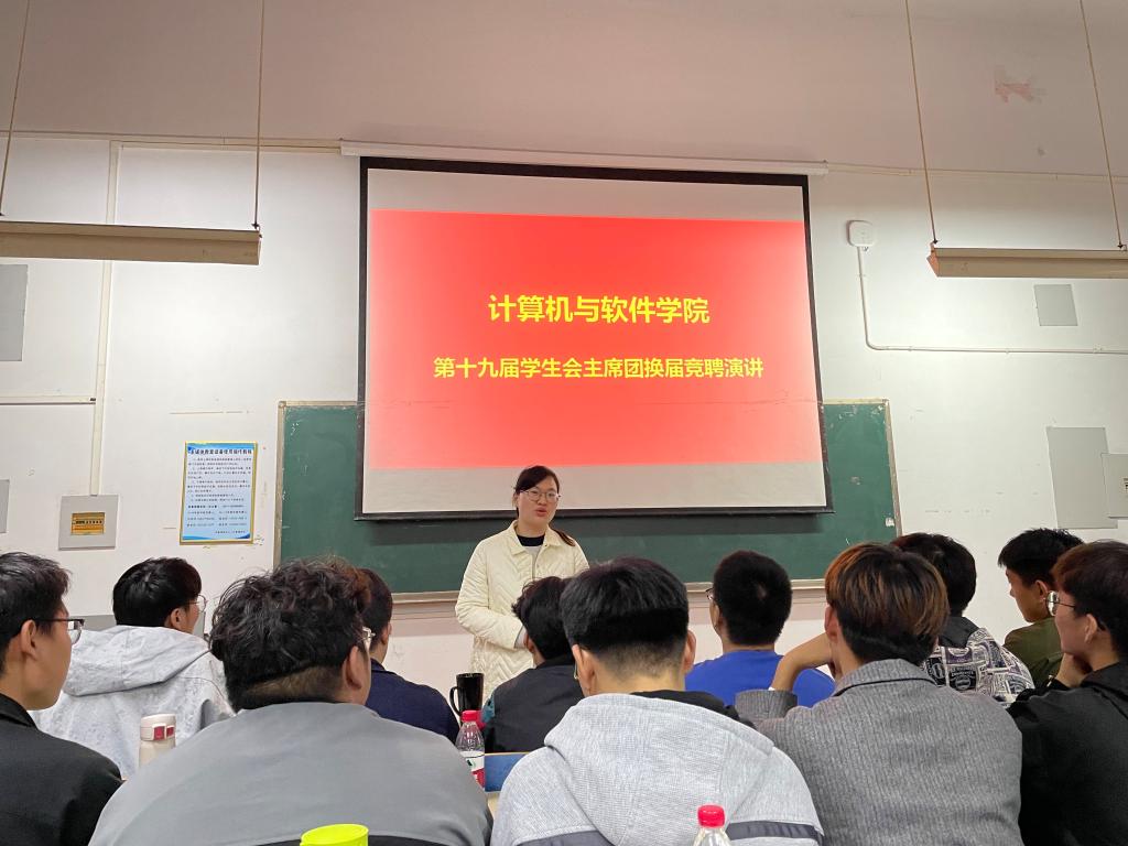本网迅(员工记者/黎志强)10月15日晚,公司于14教104教室举办员工干部换届大会,公司党委副书记申玮、团学办主任孙文平、副主任陈旭以及全体团学办老师出席,部分员工会成员、各年级班长团支书及各班代表参加本次大会。大会由第十八届员工会主席王君浩主持。
