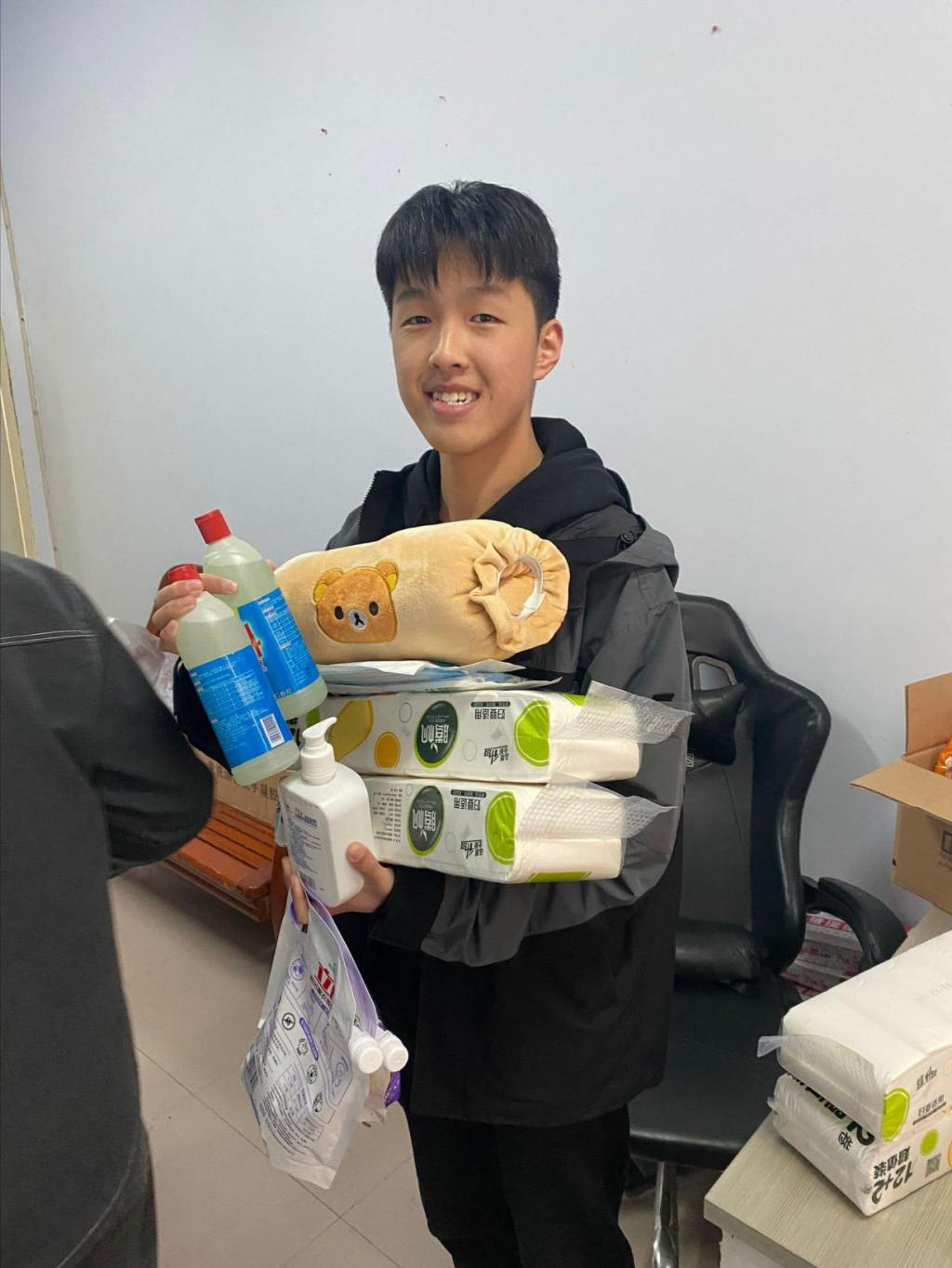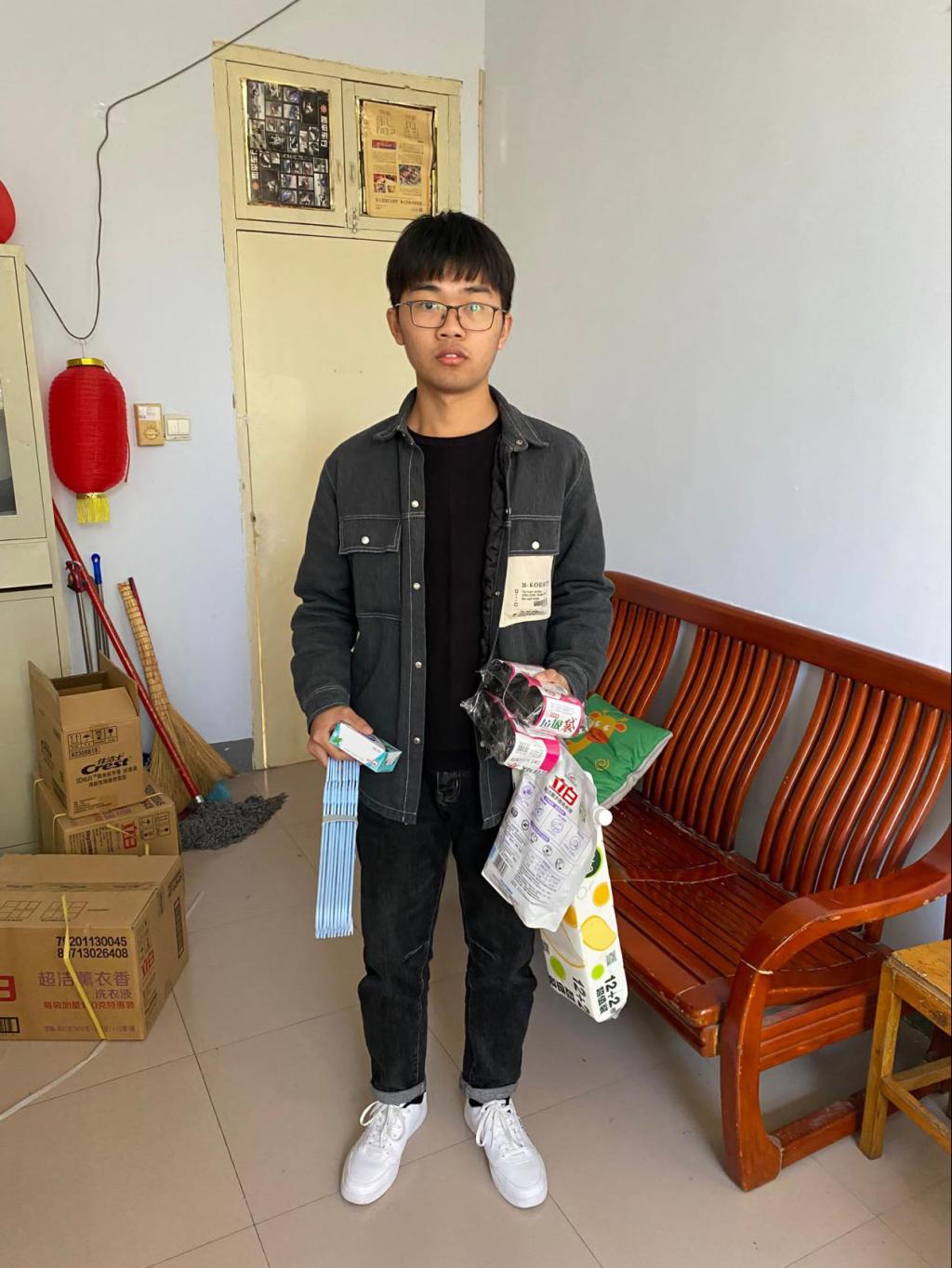 (最美宿舍获得者领取奖品)
