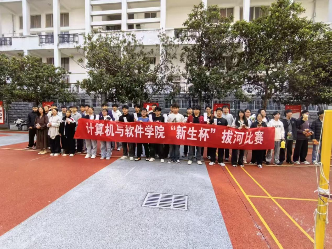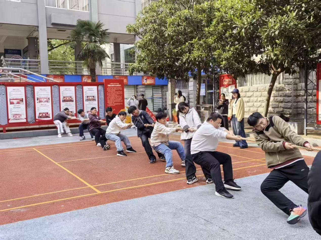 赛场上,各支队伍齐心协力、奋勇拼搏,一根拔河绳凝聚起强大的团队力量,选手们咬紧牙关、步调一致,将坚韧不拔的意志力和默契的团队协作精神展现得淋漓尽致。现场助威声、呐喊声此起彼伏,活跃了校园氛围,也让新生们在竞技中感受到了集体的温暖与力量。