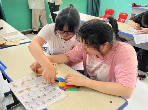 6月30日至7月1日,第一支志愿服务队走进卧龙区潜能教育培训学校,开展关爱自闭症儿童活动。志愿者们通过手工制作、写字练习、投篮游戏、拼图互动等方式,陪伴孩子们度过欢乐时光。次日,实践队员们带领孩子们进行瑜伽球训练等康复项目,并协助日常教学,在细节中传递关爱。