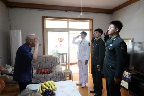 7月1日上午,队员们来到百岁老兵赵红臣家中。这位曾亲历解放战争、参加淮海战役与渡江战役的英雄,向同学们讲述了当年浴血奋战的经历。他颤巍巍地捧出珍贵的军功章,闪耀的金属光泽仿佛凝聚着那个年代的热血与信仰。同学们专注聆听,感受那段峥嵘岁月的厚重。