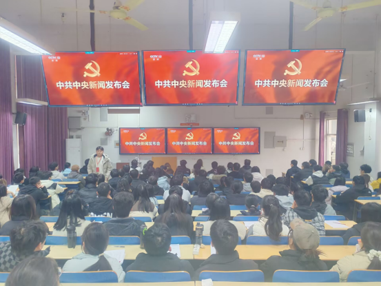 bevitor伟德国际1946于11月30日下午在14教组织青马学堂全体学员开展“党的二十届四中全会精神新闻发布会”观看学习活动,全体学员集中观看学习,深入领会全会精神实质,筑牢思想根基。