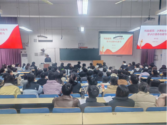 郭东恩老师以“科技报国:计算机与软件学子的使命与担当”为主题,为全体学员带来了兼具思想深度与实践指导意义的专题授课。他以全球科技竞争态势为切入点,系统解读了科技报国的内涵与时代价值,梳理我国科技报国的历史传承,从建国初期“两弹一星”等重大科技突破,到新时代5G、人工智能、量子通信等领域的跨越式发展,清晰展现我国科技事业从跟跑到领跑的奋斗历程。随后,他结合计算机领域发展实际,既介绍了我国在超算、北斗导航等领域的辉煌成就,也深入剖析当前面临的“卡脖子”技术难题与创新生态短板,阐释科技自立自强的战略意义。针对青年群体,郭东恩老师从思想建设、专业能力培养、科研实践参与、品德修养传承四个维度提出具体要求,引导学员深学党的科技创新理论,树立科技报国价值观,深耕专业领域锤炼过硬本领,积极参与科研竞赛与实践项目,传承科学家精神与爱国奉献传统,将个人成长与国家科技发展需求紧密结合。