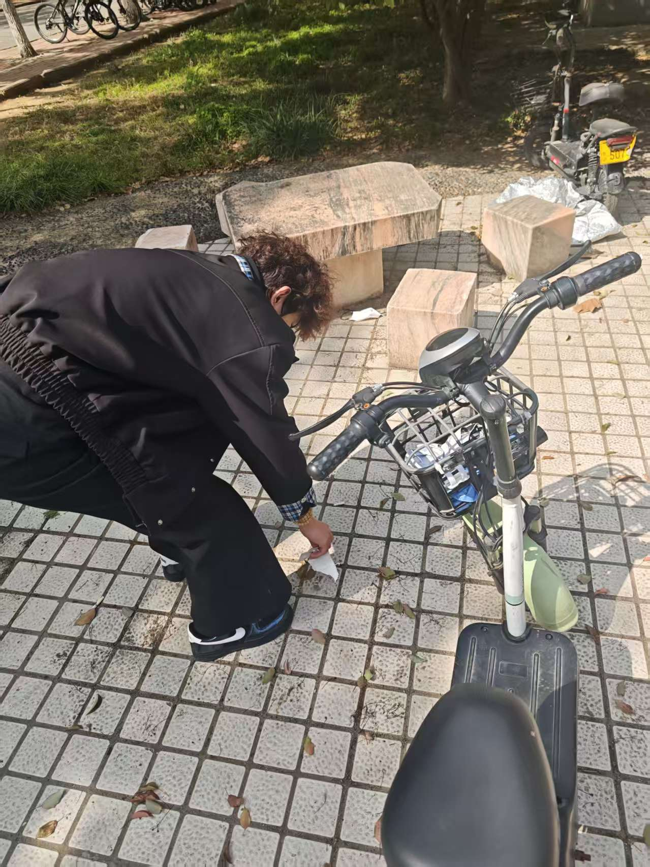 活动伊始,宿管部工作人员明确了清洁重点区域及注意事项,志愿者们迅速投入工作,分组前往各宿舍楼前区域,分工协作、有条不紊:有的手持扫帚清扫地面垃圾与落叶,有的用抹布细致擦拭公告栏、门禁等公共设施,有的清理楼道口堆放的杂物。面对顽固污渍与卫生死角,大家耐心擦拭、反复清理,使原本略显杂乱的宿舍区变得井然有序,公告栏也焕然一新,为同学们查看通知提供了便利。