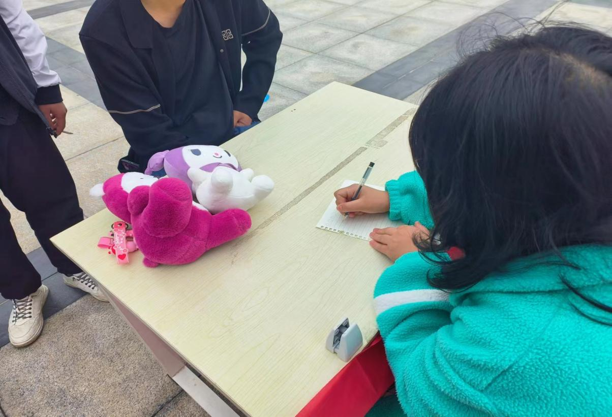 本次活动包括心理题目问答、心理建设绘画、话本以及手工剪纸。在活动现场,同学们也可以将自己心中的烦恼或疑惑写在纸上倾诉,投入专门设置的密封箱内。有需要回信或解答的同学,工作人员指导他们在纸上留下自己的联系方式,活动结束后将派小专员匿名送信。